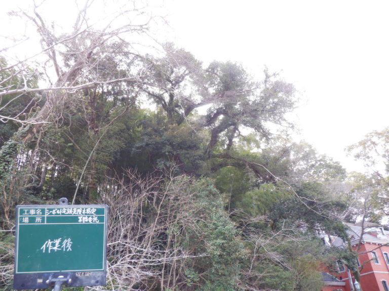 シーボルト宅跡の裏手に生えているムクの木の剪定を行いました。