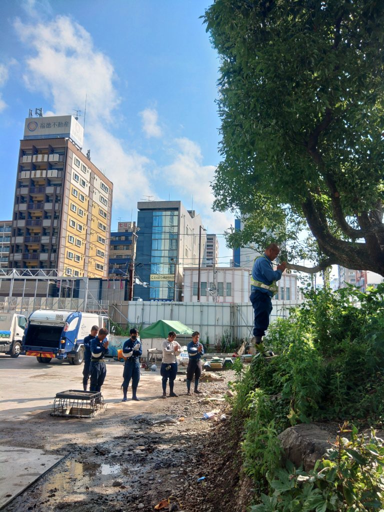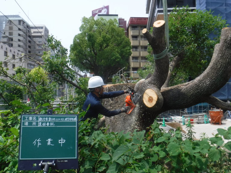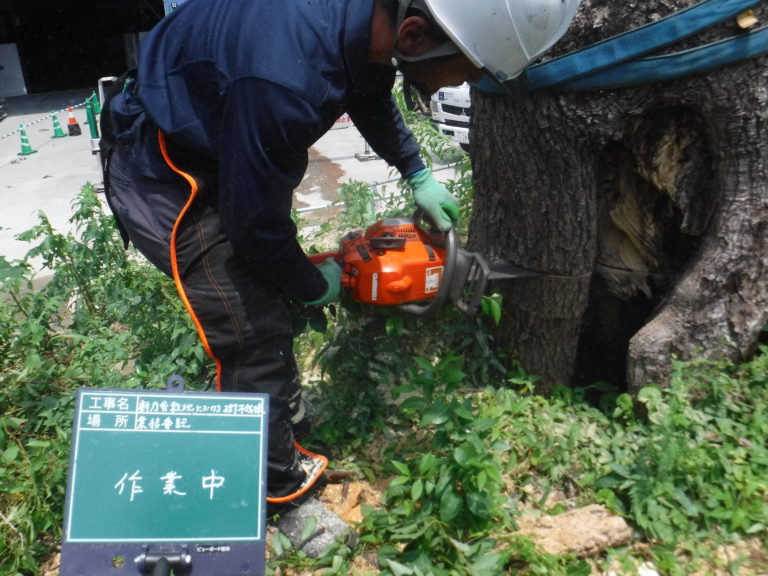 仕事内容長年にわたり、市民に愛されてきた公会堂跡地のクスノキを1本伐採いたしました。内部が腐れており、やむなく伐採となったそうです。