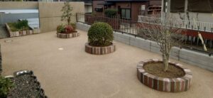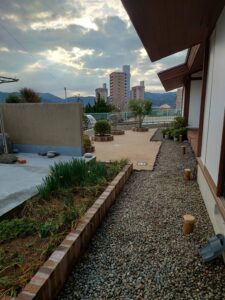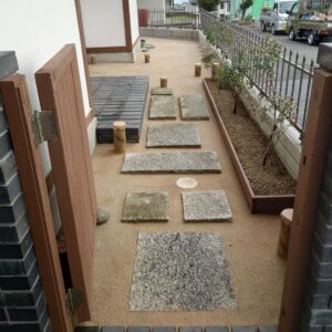 地面を防草マサ土舗装しました。庭石や樹木も撤去し花壇を新しくつくりました。