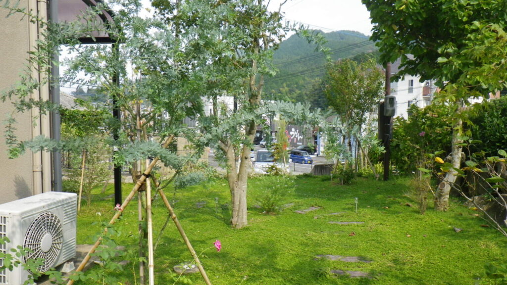 エリア 長崎市 施工期間 1週間 仕事内容 古くて大きくなりすぎた樹木を伐採し、新たに植栽しました。土がむきだしで除草が大変な箇所にグランドカバーでクラピアを植栽しました。