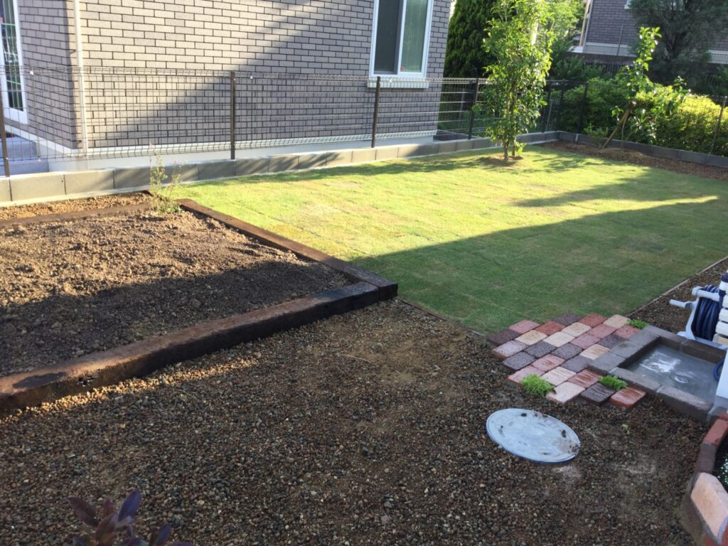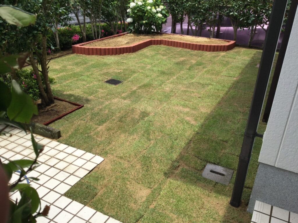 エリア 長崎市 施工期間 2日間 仕事内容 古くなってムラができていたお庭の芝を張り替えました。また、新たに花壇を設置しました。季節の花や野菜を育てて楽しんでいただけると思います。