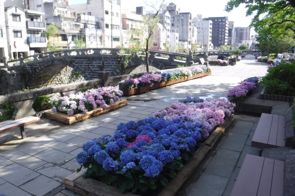 エリア 長崎市 施工期間 仕事内容 眼鏡橋周辺で紫陽花の展示を行いました。(現在は終了しています。)色鮮やかでとても癒されました。