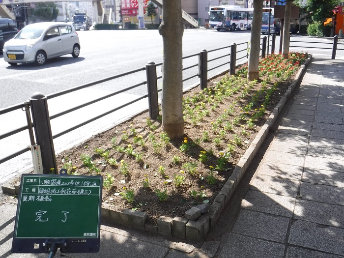 エリア 長崎市 施工期間 仕事内容 県の仕事で植栽を行いました。長崎駅前や夢彩都前に花を植えているので、みなさん通る機会があればぜひご覧になってください。真夏ですので、現在水やりに奮闘している日々です。(笑)